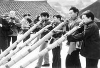 这种奇特的简便的乐器“芒筒”,其实不啻为一件抽象的艺术品,颇有欣赏价值。苗家人世世代代都用它来陪伴生活,一看到它就想到快乐和吉祥的乐曲。在黔东南还有一种对筒的复音芒筒,它是将毛竹共鸣筒的竹节全部打通,首、尾两端都开成45°斜口。演奏时,共鸣筒横置,由两人执簧管吹奏,可发出乐曲调式的主音和属音两个音来。这种对筒在其他侗乡苗寨极为罕见。在乐器厂协助下,研制出二十九管芒筒,音域D-g2,包括十二半音,保持传统芒筒音色,亦可奏单旋律和复调性乐曲。