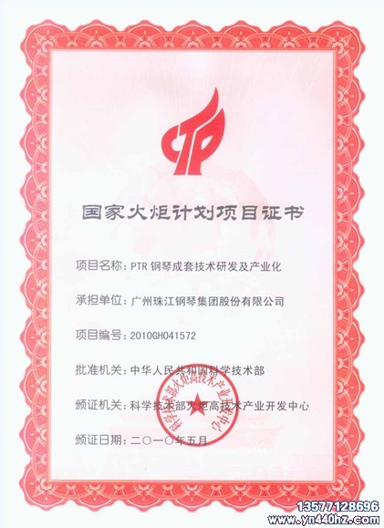 PTR钢琴成套技术研发及产业化项目使企业掌握了更丰富的钢琴设计理论和工艺理论,缩小了与国际知名钢琴的技术差距和品质差距, 中高档钢琴的研发成功并实施产业化有利于中国钢琴制造业技术水平的飞跃发展,较大提升了我国钢琴制造业整体的技术工艺水平,为实现胡锦涛总书记提出的“促进文化事业大繁荣大发展”做出了贡献。