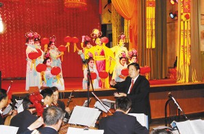 10月22日,牛街庄村“农民滇戏博物馆”内锣鼓紧凑、歌舞飞扬、掌声四起。一场名为“尊老、敬老、爱老”的文艺演出精彩纷呈,目瑙纵歌舞、女高音独唱、花灯小戏、拉丁舞等精彩节目一一上演,但最让观众拍手叫绝的是传统滇剧《游西湖》。这个用西洋乐器和民族乐器共同演绎的传统滇剧《游西湖》,受到了新老观众的一致喜爱。